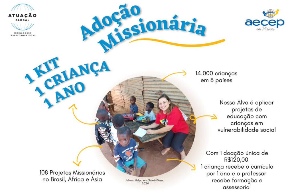A Atuação Global foi reconhecida como uma das 100 melhores ONGs do Brasil, por causa de nossa transparência e boa mordomia dos recursos que Deus tem nos confiado. Sua doação faz a diferença na vida de crianças e comunidades ao redor do mundo, em parceria com a AECEP em Missões.